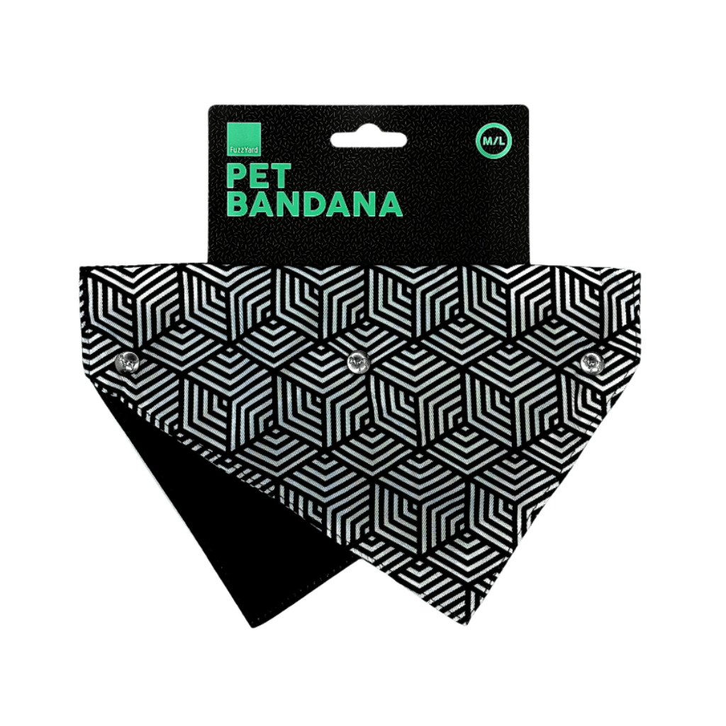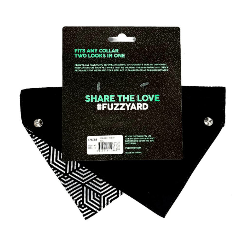 Dale a tu mascota un toque de estilo único con esta bandana reversible de FuzzYard, diseñada para combinar con cualquier look. Fabricada en poliéster ligero y resistente, esta bandana se coloca fácilmente sobre el collar gracias a sus prácticos botones a presión.